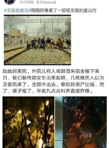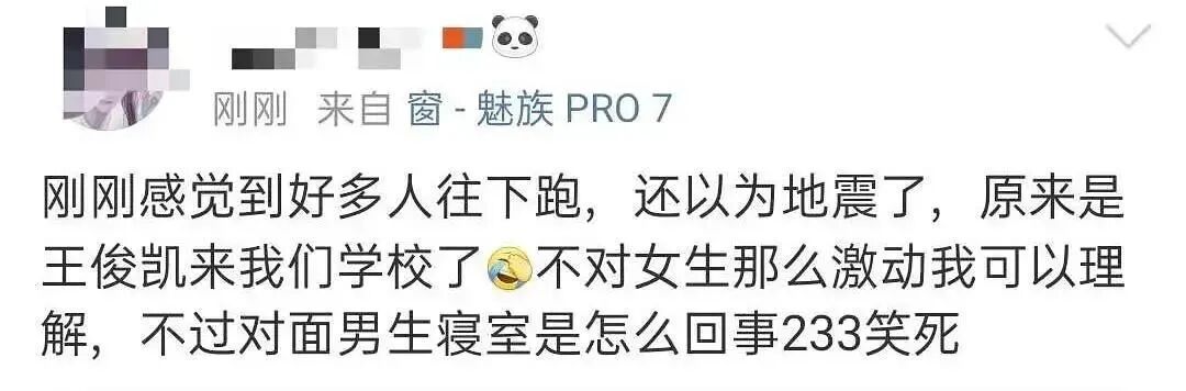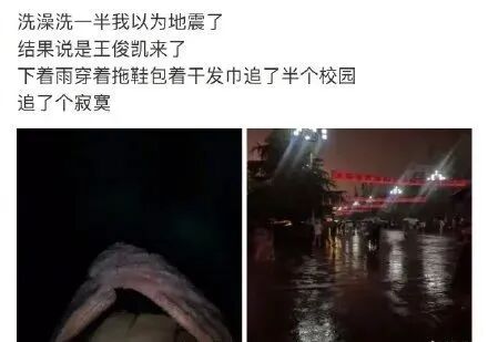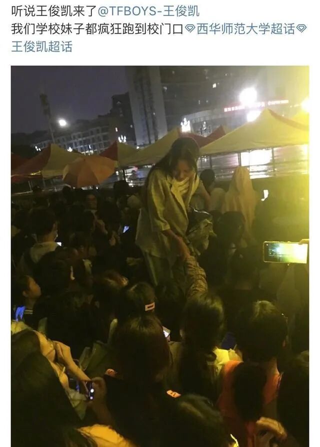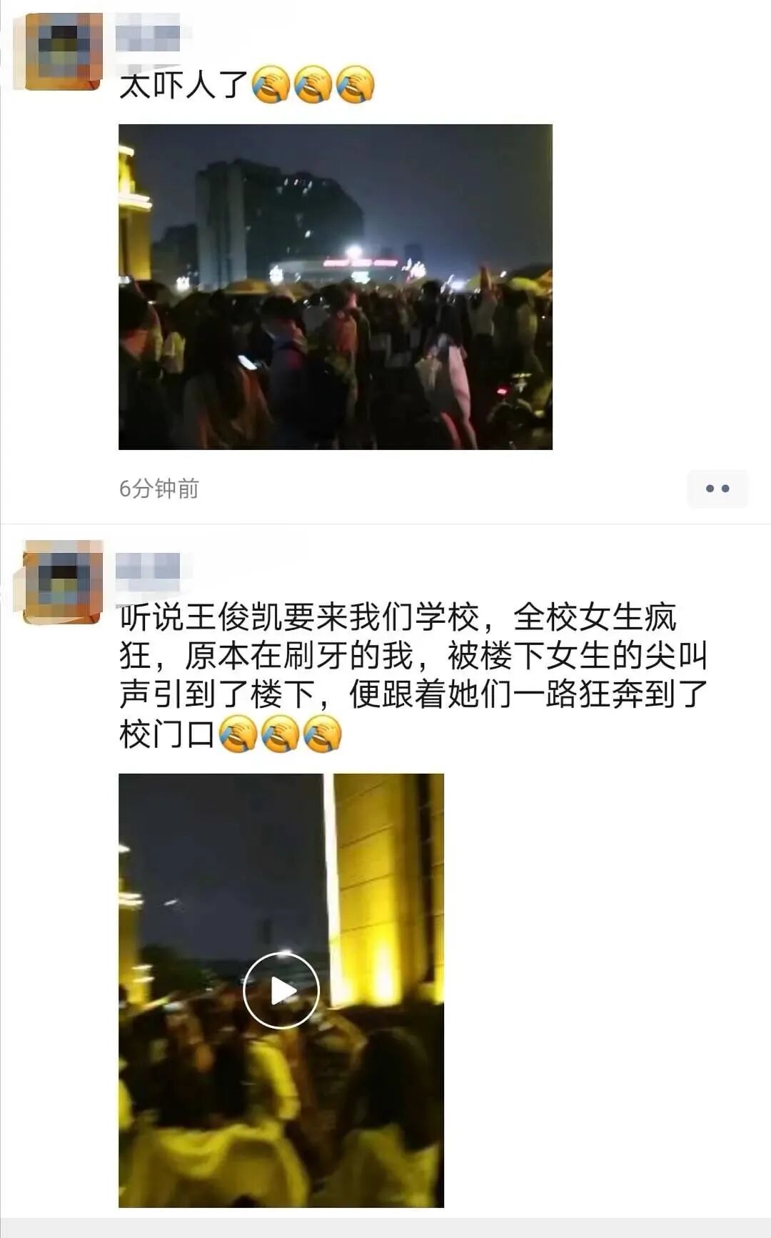 在疯狂的人群中,有洗澡洗到一半,以为是地震了,结果别人说是王俊凯来了,就穿着拖鞋包着干发帽追了半个学校,才发现自己追了个寂寞的。