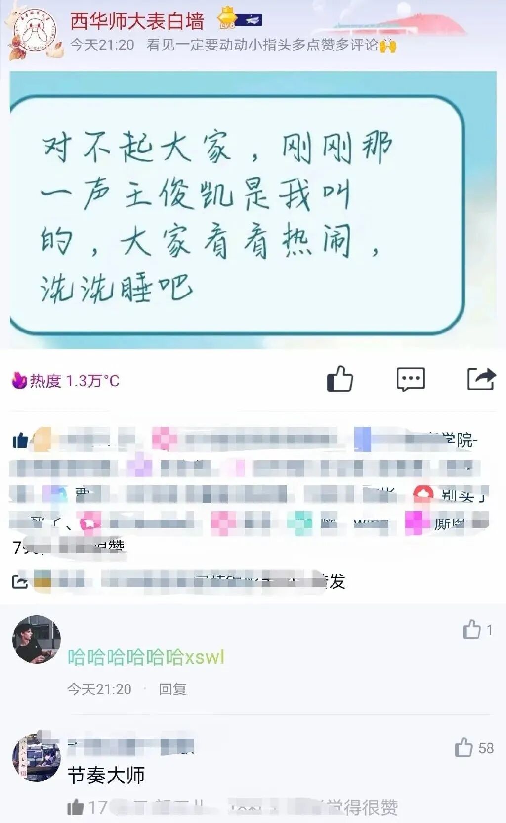 “对不起大家,刚刚那一声王俊凯是我叫的,大家看看热闹,洗洗睡吧。”