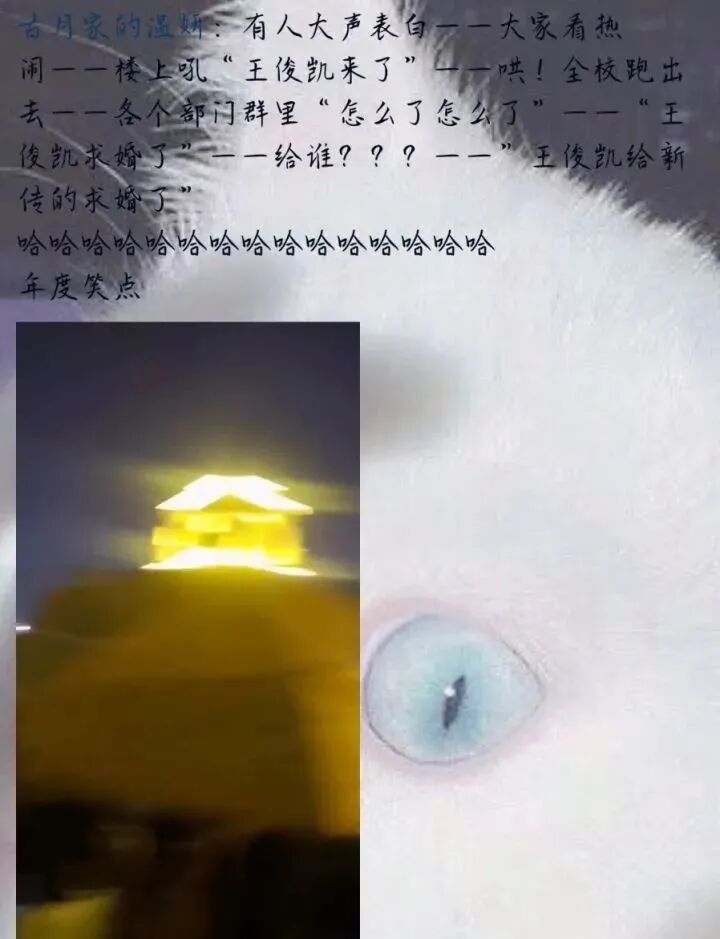 事情是这样的,之前在学生间,就有传言王俊凯会来这里拍戏取景,正巧某天一男生公开表白女神失败,就造了个谣缓解尴尬: