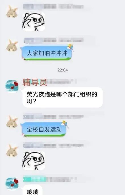 辅导员看这阵势都特别迷惑,问大家啥情况啊,一个劲儿冲冲冲的,以为是哪个部门组织了荧光夜跑活动。