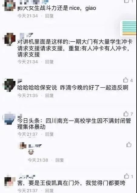 保安都以为学生们被关疯了,要冲出去了,一个劲儿在对讲机里联系上级:请求支援!请求支援!有人冲卡!有人冲卡!