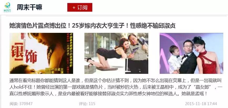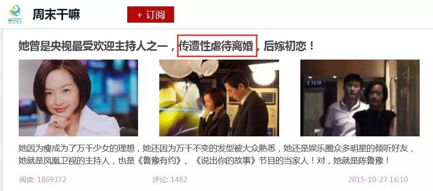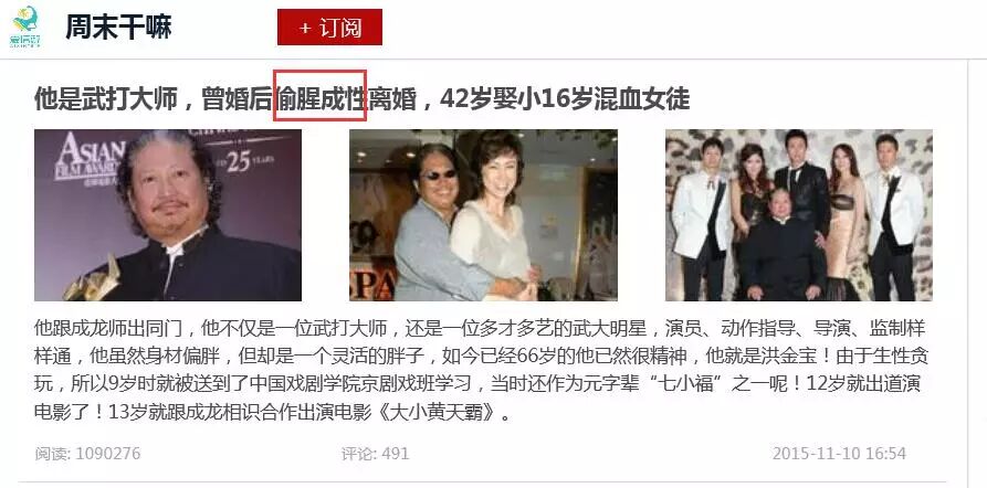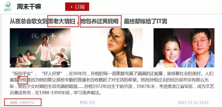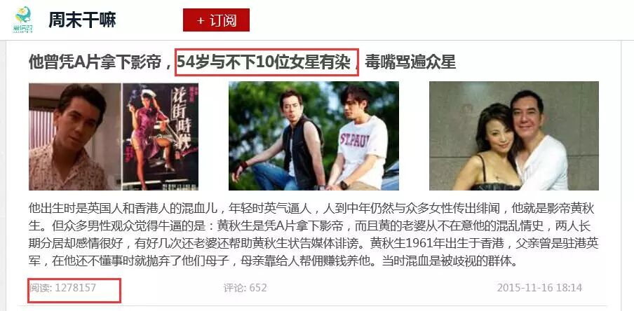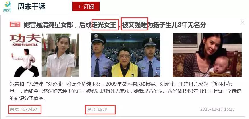 因为他们是一个公司,旗下运营很多这种公众号,保持热度、保持点击率,吸引广告商,不管他们是黑黄圣依也好,黑徐峥也好,目的都是商业投放。