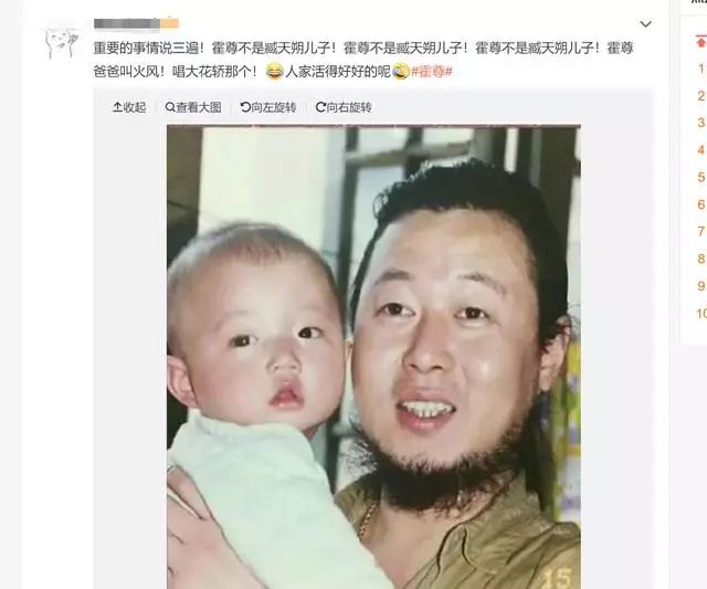 臧天朔可能是因为外形和霍尊的爸爸长得有些相似,亦或是因为他和霍尊的爸爸有这其他的共同点,很多网友和粉丝一时间没有缓过神来,纷纷认为霍尊的爸爸是不是就是臧天朔,还有网友跑到霍尊的微博下面去安慰他,而事实是霍尊的爸爸是火风,就是演唱太阳出来爬山破的那个。