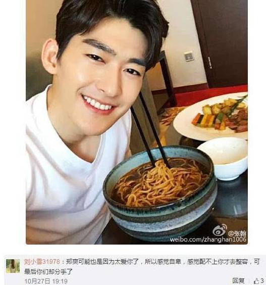 更可怜的是,张翰吃个牛肉面吧,也会有爽粉来斥责:“小爽都这么瘦了,你怎么还有心情吃牛肉面?!”