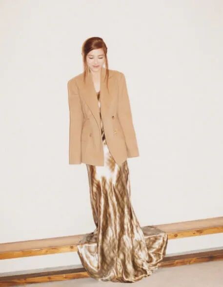 画面一转,邓紫棋套上了一条宽大的大衣,都快拖地的版型,华丽的条纹装饰,却一点不会让你觉得臃肿。反而,多了几分高级的质感。少女的脸颊,以及成熟优雅的风格,这种半熟少女穿搭,满满的高级质感。
