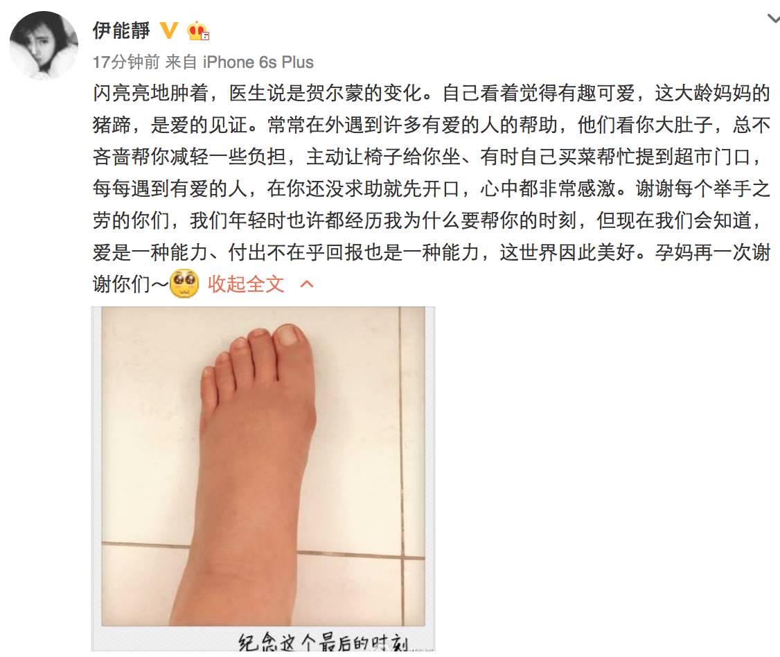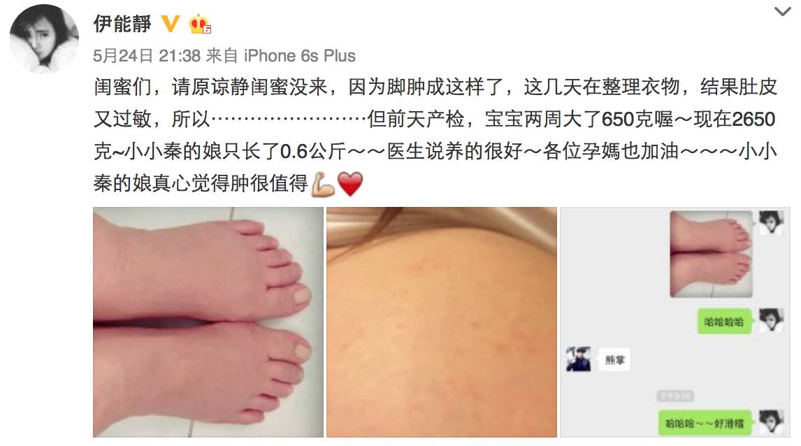 近几日静闺蜜又晒出水肿照片,戏称自己的脚像“小猪蹄”。为了消肿,还尝试了泡脚、喝红豆水、请孕妈专用的按摩师按摩等方法。虽然非常辛苦,但是小公主长的很好,孕妈乐观开朗,温暖的文字透出满满正能量。网友纷纷送上祝福,大家一起期待小小秦的到来!