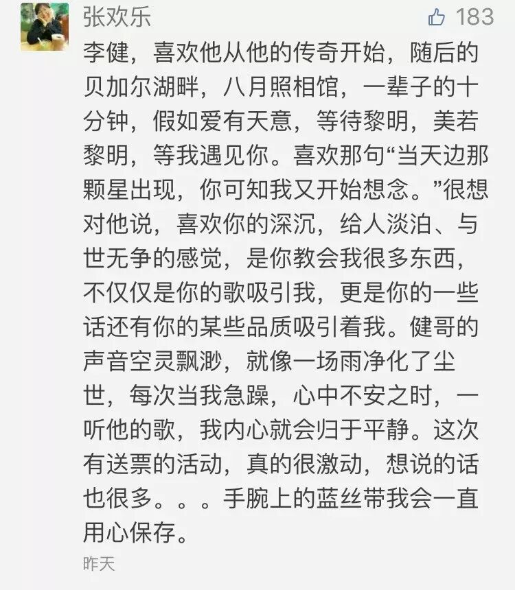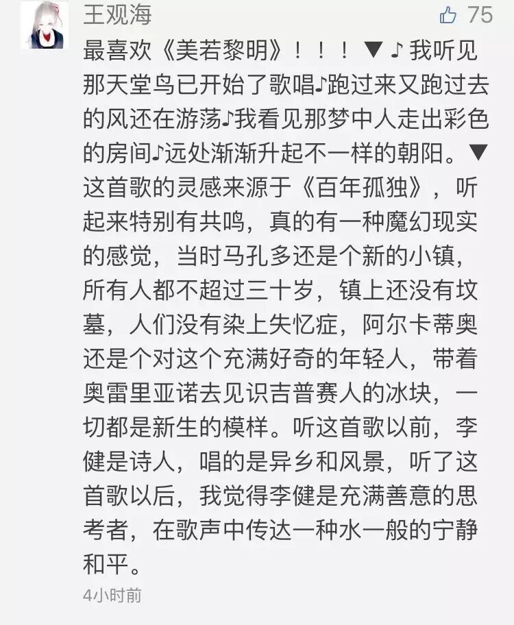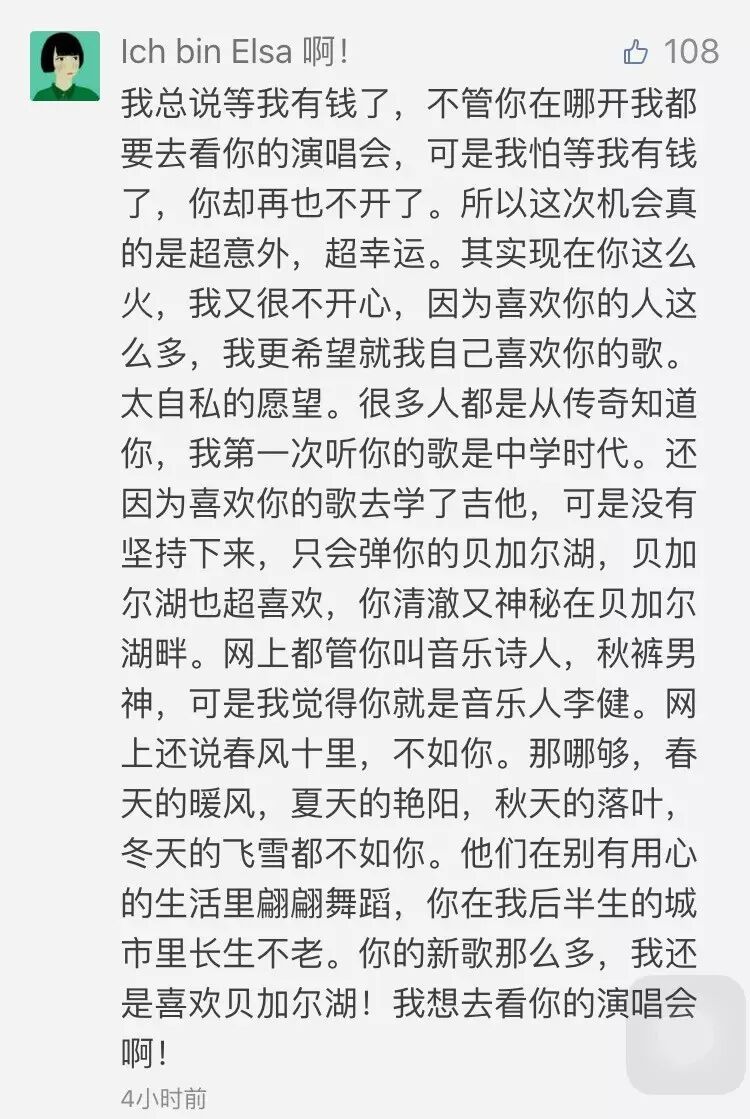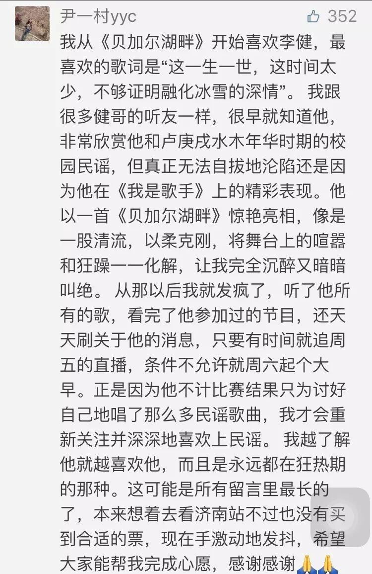 3 本次活动特别欢迎高校大学生参与,大学生粉丝可注明“学校名称+我爱李健+姓名+联系方式”;
