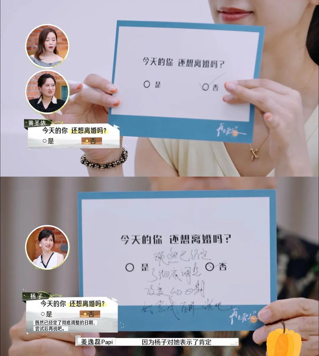 黄圣依在节目中依然勾选了不离婚 / 图源:《再见爱人4》剧照