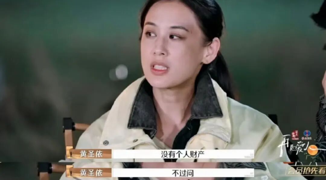 黄圣依在节目《再见爱人》中说她没有个人财产 / 图源:《再见爱人4》剧照