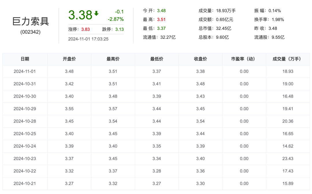 2024年11月1日,巨力索具市值已蒸发近三分之二 / 图源:巨力索具股份有限公司官网