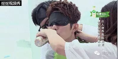 其实这是在节目中设置的一个游戏环节,前后两个人蒙上眼睛互喂食物,并猜出食物名称。是不是看被强行喂食的陈学冬很可怜,其实薛之谦也没好到哪里 ↓