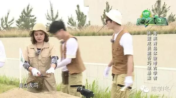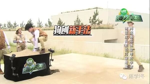 薛之谦的狗刨式挖掘猝不及防得刨了站在后面的陈学冬一脸土。
