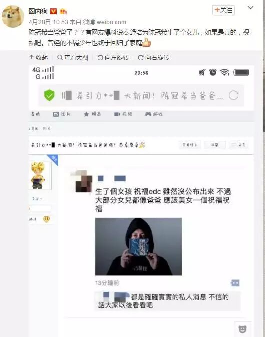今年4月,有网友爆料说秦舒培为陈冠希生了个女儿。