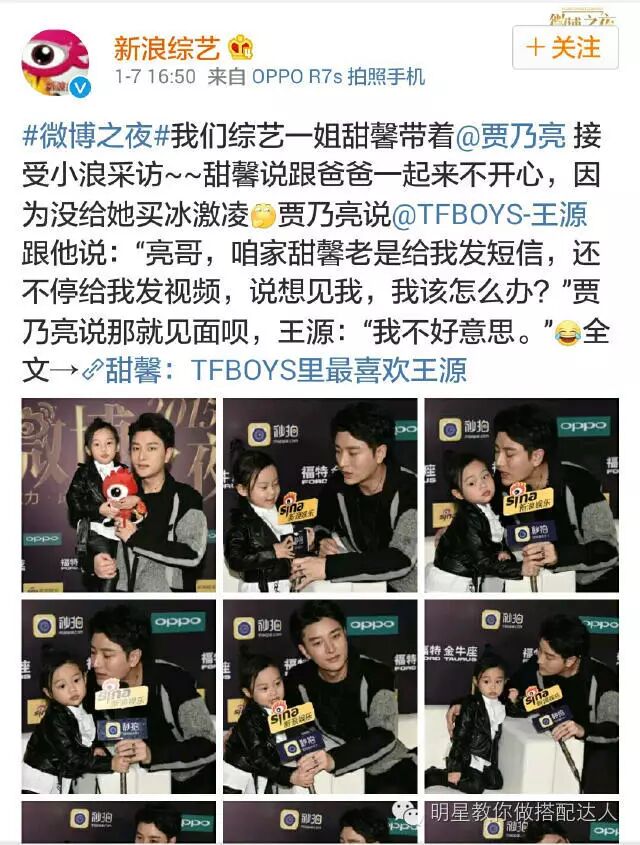 贾乃亮在采访中透露,王源曾经跟他说“亮哥,咱家甜馨来给我发短信,还不停给我发视频说想见我,我该怎么办?”