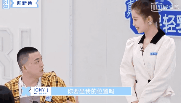 选座位时,因为想坐在偶像Lisa的旁边,甚至试图要Lisa旁边的导师Jony J让出位置。在Jony J旁坐定后,又隔着Jony J对Lisa说话,坐在两人中间的Jony J仿佛不存在。