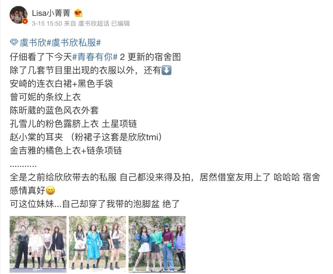 据传言,虞书欣带了六十多套衣服参加《青春有你2》。而在后面的节目里,她却大方地把自己的大牌衣服借给了其他选手。