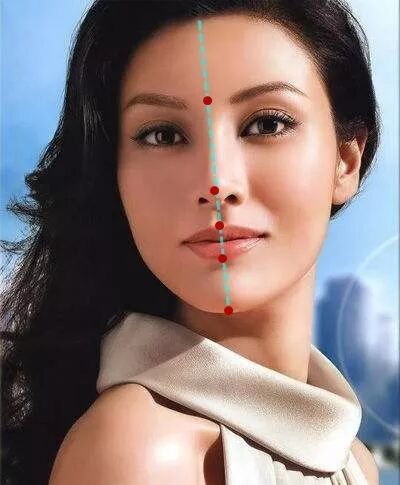 运用到审美上就是俗称的黄金中轴线原理,就是如果面部中轴线上的额头,鼻部,唇,颏足够立体到形成视觉焦点,就能让观察者形成一个整体印象。