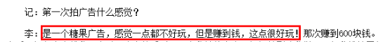 可能由于自小就过着吃苦受穷的日子,因此李嘉欣十分坦荡,一向都不掩饰对物质和金钱的渴望。第一次接拍的是一个糖果广告,她表示一点都不好玩,但“赚到钱,这点很好玩!”