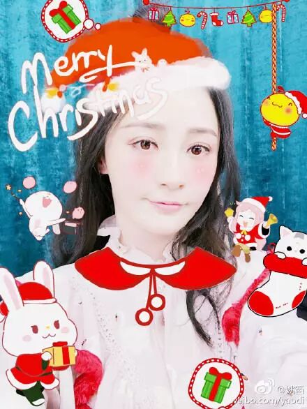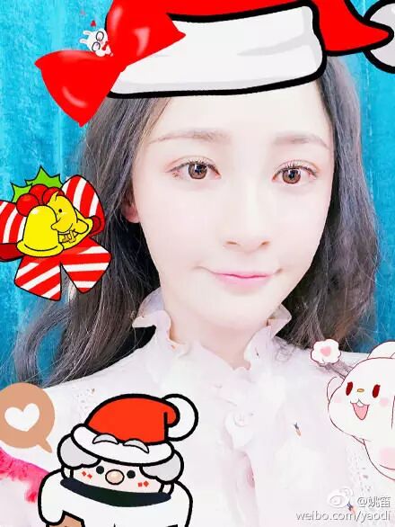 姚笛通过微博晒出两张圣诞自拍照