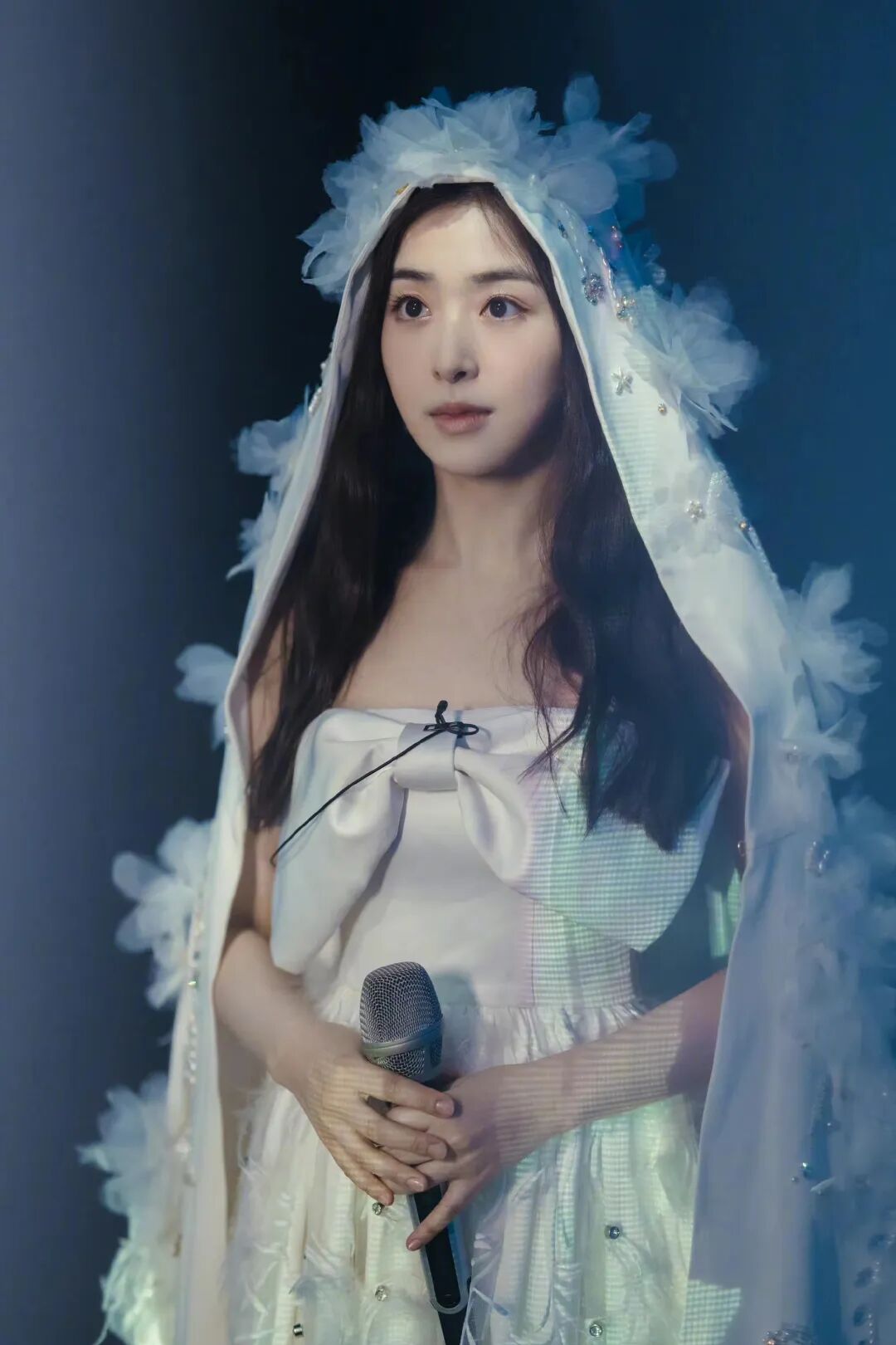 舞台上,一袭白色长裙的张含韵,动情地唱着: