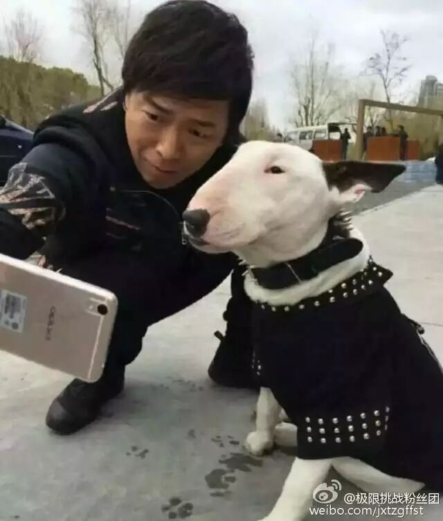 那边黄渤就跟“犬版孙红雷”自拍了,而且撞脸度更高