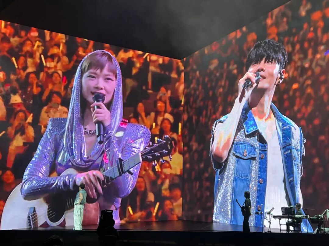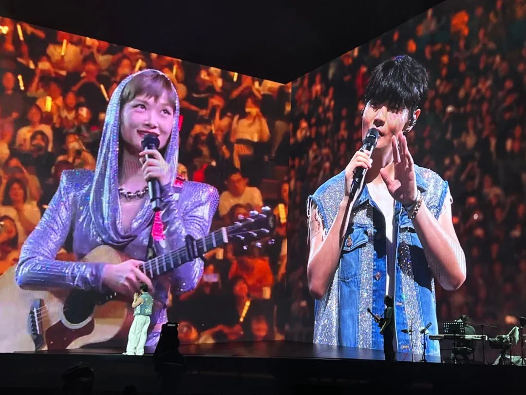 对了,李荣浩真的很爱在演唱会上整活儿,每场都有特别节目,今晚的小彩蛋应该就是李荣浩和李宇春连线对对联了吧。