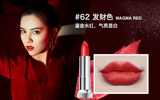 当时我看了官方的色卡,一眼就瞄到这支62号发财色!怎么说呢,就是莫名觉得红得超级美~