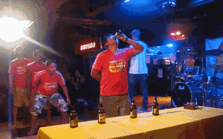 Each team has five members, everyone in the team drinks beer from the table in turn, and the team with the shortest time wins.