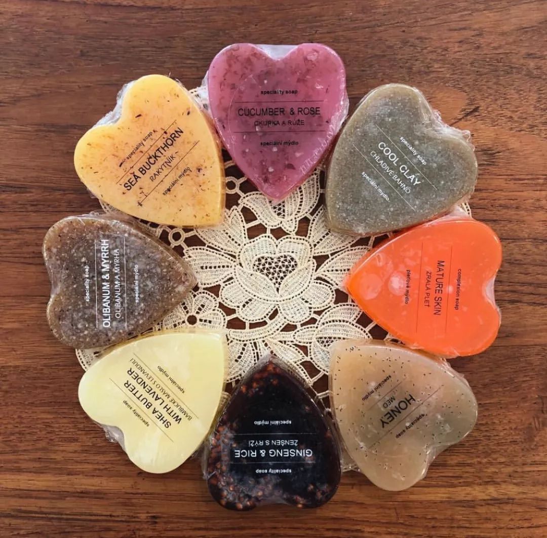 Each piece of handmade soap is made from fresh flowers and fruits. The original traditional features are used to preserve the original appearance of flower and fruit.