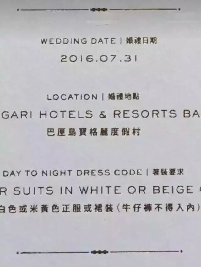 婚礼定在 7月31日在巴厘岛宝格丽酒店举行,这个巴厘岛简直是承包了仙剑所有婚礼,杨幂刘恺威在此举行婚礼,刘诗诗吴奇隆在此举行婚礼,霍建华林心如也将在此举行婚礼,就差紫萱和景天了!