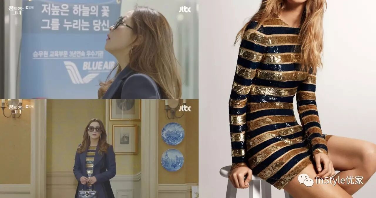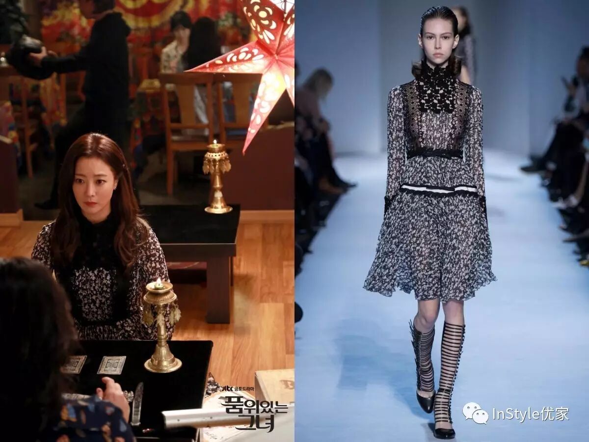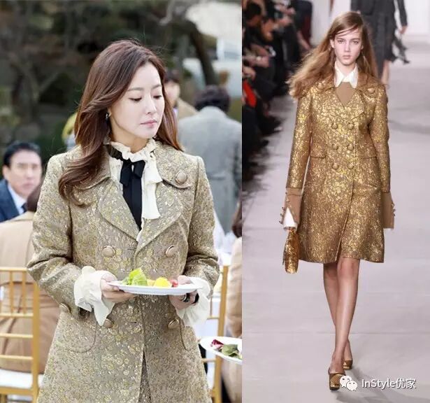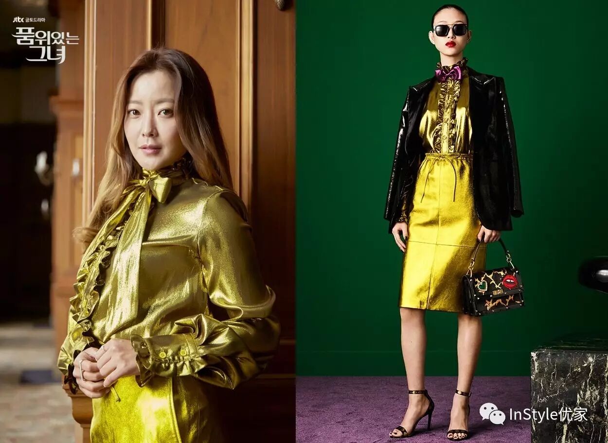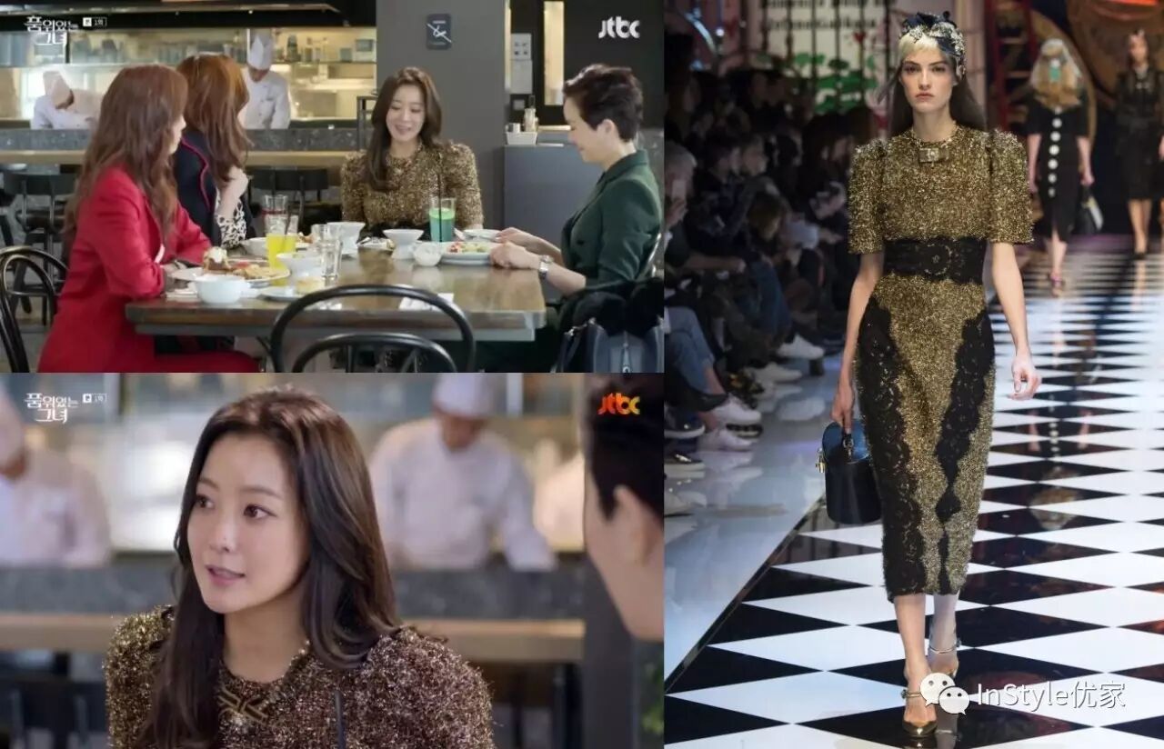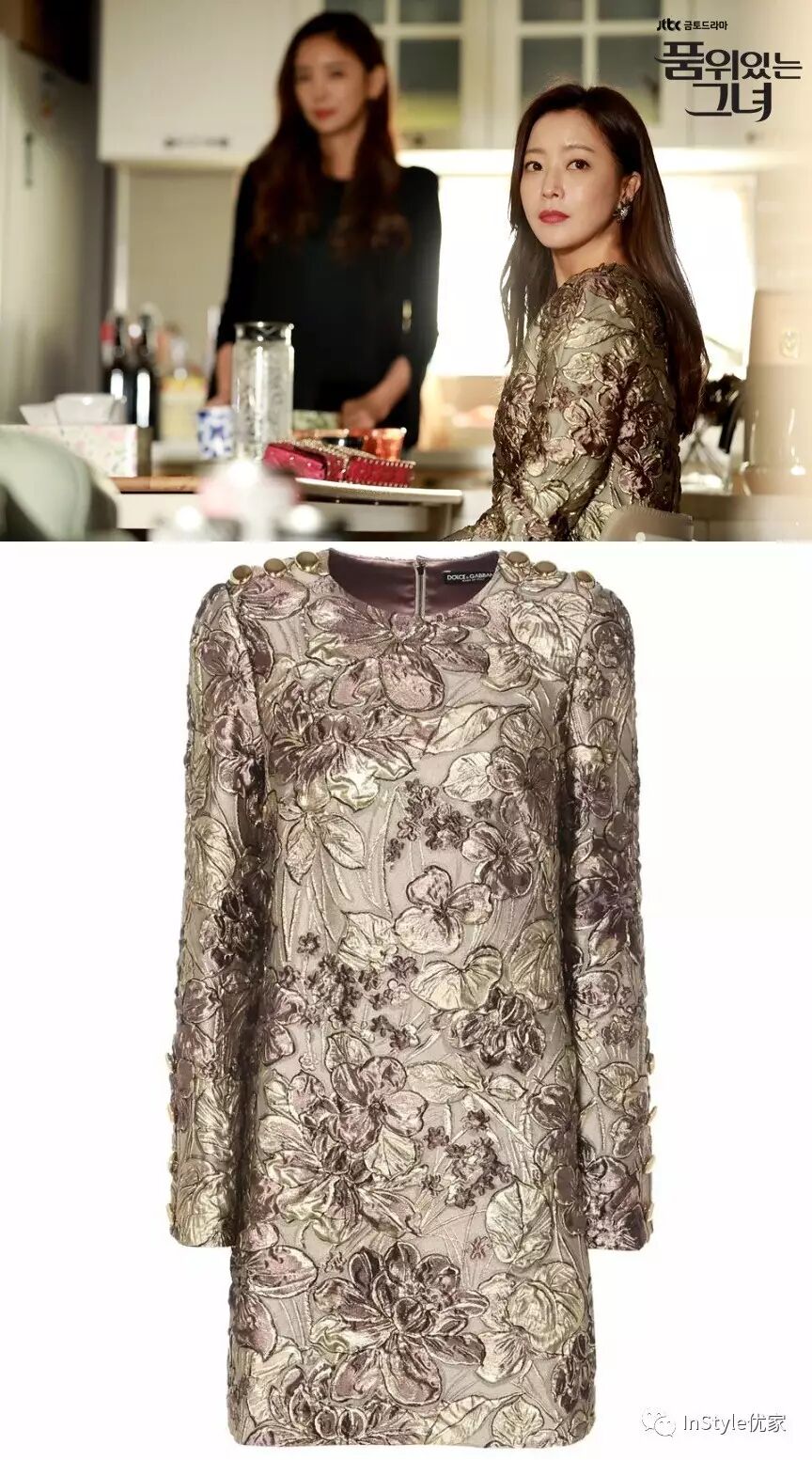 作为上流社会的贵妇,日常生活中怎么能少的了各种各样貌美的洋装呢?bling bling的材质处处彰显着华丽感,彰显身份可能这是贯用的手段,但金喜善绝对是一股清流,将这些繁复、浮夸的衣服穿得清新脱俗。