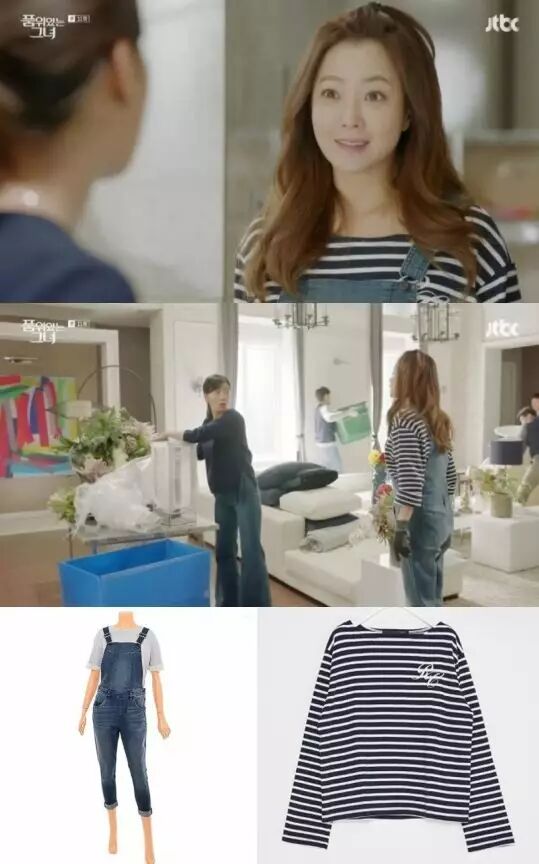 ▼清爽条纹和牛仔背带裤的搭配同样是逆龄的标配。