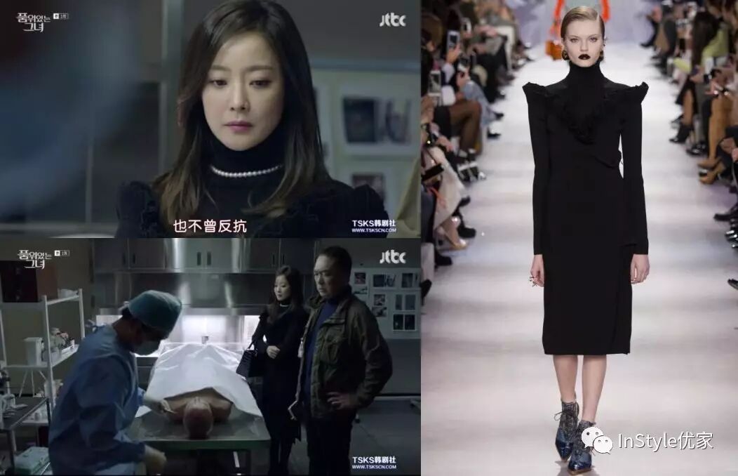 开始法医验尸时,金喜善身着Dior的黑色洋装登场,被阴郁笼罩着冷酷无情。