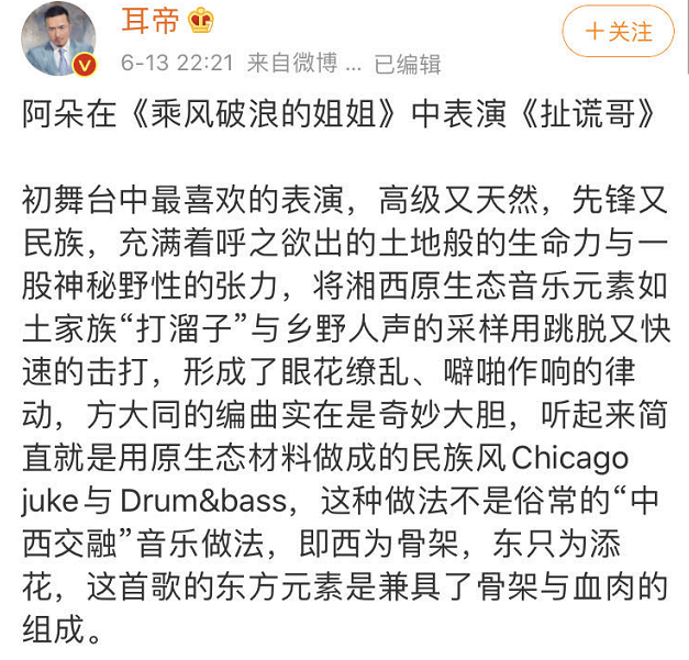 阿朵,一个让宁静猛虎落泪的女人 当时我就震惊了 内地女星 2020-07-14 23:41:17 887 创作不易,用心坚持,欢迎请BaGua喝几杯爱心咖啡!打赏并支持本文 打赏并删除本文 上综艺向来不知道流泪为何物的宁静哭了。 和上一次还是在戏里为了“多尔衮之死”才有的哭泣相比,这一次,面对着满桌子美食仍然感觉食之无味的静静子,眼泪里显然多了一些不舍和惋惜。而让一向铜墙铁壁的静静子流泪的不是别人,正是在《乘风破浪的姐姐》相见之初,在她口中“像你这样的形状很少”的阿朵。说起阿朵这个歌手,如果你是80后、90后,肯定会对那一年站在台上身穿着一袭异域服装热舞、性感火辣的卡门姑娘印象深刻。但如果你生在95后,甚至00后,那么你的印象里很难会有她的影子,或者说,即便有印象,也和曾经的阿朵完全不一样…1980年,一个小女孩在湖南吉首出生了,名字叫阿朵。 爸爸是土家族,妈妈是苗族,都很能歌善舞,阿朵也继承了这样的天赋。小一点的时候,她就喜欢跟着家里的黑白电视机唱歌跳舞,后来长大一些了,爸妈也发现她是这一块材料,一合计,干脆送她去学了舞蹈。 小阿朵确实也没有让爸妈失望。 7岁领舞登台演出,8岁进入省艺校学民族舞,10岁成了一名专业文工团舞蹈演员,16岁那年,就在全国性的歌唱比赛中拿到了好名次… 一路走来顺风顺水,任谁看,阿朵都是天生就适合舞台的,阿朵本人也这样觉得,于是转业之后,阿朵便决定留在北京发展,登上更大的舞台。 如果这是一个还未见过大风大浪的寻常小姑娘,孤身一人留在大城市就说什么追梦想,可能要被人笑痴人说梦了。但,她不是别人,是阿朵。也许是从小丰富的舞台经验历练,也许是少数民族女儿那份果敢和风情的浑然天成,在这条路上,阿朵依旧延续着自己的好运气。 那个关于舞台的梦还真叫她给实现了。 很快,她就被日本音乐人小室哲哉发掘,并与其香港的公司签约,接下来,她又先后参加了在北京工人体育场举行的《21世纪大比拼演唱会》,还赢得了中国五大城市巡演的机会。那时,跟她一起巡演的都是毛阿敏、孙楠这样级别的人物。 这中间阿朵也没有放弃努力,一闲下来,不是练习唱歌跳舞,就是研究设计一些新的动作。 不过,纵然得到了许多别人求都求不来的机会,但有句话说得好:红与不红,真的是一门玄学。 即使已经在圈内崭露头角,那几年,阿朵离大火却还是差那么一点火候。 这种情况一直持续到2005年才有了转变。 那一年,阿朵以一曲《再见,卡门》登上春晚,表演只有58秒,却让她过往数年积蓄的能量一朝爆发。 露脐装、低胸吊带、开到大腿的裙衩…舞台上的阿朵好像骨子里就透着一股子吉普赛女郎恣意妄为的性感。 于是,那一年所有人都知道那个眼波流转,一边跳舞一边唱“上帝是好姑娘”的阿朵火了。火的一塌糊涂,火红了半边天。 那时的阿朵,身边像是弥漫着一圈无形的能量磁场,没有她不敢说,也没有她不敢做的。后来,舞台上“疑似走光”事件闹得沸沸扬扬,因为她走的是性感路线,很多人就把那点对于性的羞耻感转移到了她身上。 他们觉得性感这事不好启齿,便也顺理成章的认为阿朵也是如此,谨小慎微,任人捏圆搓扁。 趁着阿朵在台上跳舞,有人故意把摄像机挪到位置很低的地方拍照,试图拍到走光瞬间,到时候照片一上头条,谁管你是不是被偷拍的,大家只会说:阿朵走光了,一定是故意的。 不过,这些人如意算盘显然是落空了,得知这件事的阿朵在博客上痛骂“偷拍者”。 “你不尊重女人我没辙,但我把话说在前面,今后我在跳舞时谁要再继续在我脚下很低的位置拍照,我一定会一脚把他妈的相机踢飞,不信等着瞧!”你看,这就是阿朵,遇见不听话的小老弟分分钟在线教育的狠姐。 她有自己强大而自信的精神世界作为支撑,若是谁想要用body shame这一套攻击她,那是没有用的,就像一拳打在棉花上,攻击她的人觉得挺得意,但实际上人家真没往心里去。 后来,又有人说:腿粗!女明星哪有腿那么粗的! 阿朵又在线教做人:那我真是谢谢您了,看一下欧美那些天后,有几个腿不粗的?越腿粗还越天后呢!呵呵!说这话,阿朵是有底气的。 从小就练就的舞台感和唱功无可挑剔,天生的一副好样貌和火辣身材,旗帜鲜明的个性又注定了她不会朝着温吞发展的路子去走。 但常言说,事有两面。 阿朵的一朝爆红,也在无形之中把她推到了另外一种不可回头的境地。 以热辣性感的形象打出一片天之后,公司意识到了阿朵身上巨大的商业价值,开始刻意朝着这个路线包装。 2007年,阿朵为《男人装》拍摄的性感封面引起了轰动,3天之内狂卖50万册,直接脱销了。这是什么概念呢?这数据别说放在十多年前就吊打一片女星,就是十几年后的现在,也无人超越。 那几年,阿朵一鼓作气,拍杂志,上节目,当评委…把能接的通告都接了个遍。 2007年到2010年更是登上了《福布斯》中国名人榜,阿朵更忙了,也更火了。但这一切却没有让阿朵感受到更满足,而是身心俱疲之后的巨大失落…阿朵发现,自己不论是事业还是感情上仿佛都陷入了低谷,并且无法自拔。 感情上,她在此之前曾经有过三个男友。 初恋,因为“不忠”而分,又因为“爱他”而复合,但每次复合她会发现自己被伤害的更深,最后还是走向了因男友不忠打碎她对爱情坚持的结局。第二个,也就是很多人都知道的那一段。 阿朵最难的时候,她遇到了高晓松,尽管好友王铮提醒她