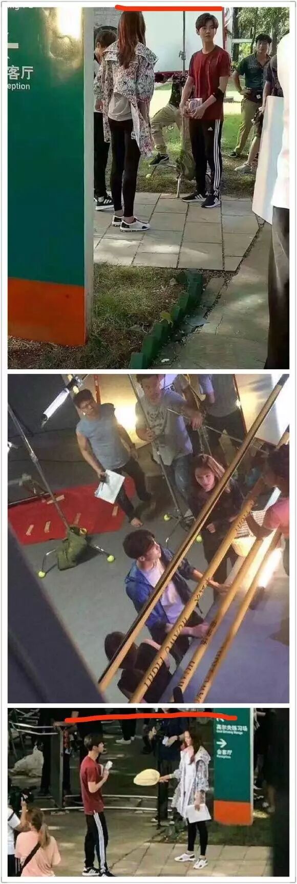 5厘米的差距也应该是挺大的了,可是从路透照看,两人身高悬殊一点都不明显其实,之前关晓彤也和同样是178cm 的张艺兴拍戏,两人在戏里面就是差不多高的,关晓彤甚至为了照顾张艺兴,从没穿过高跟鞋