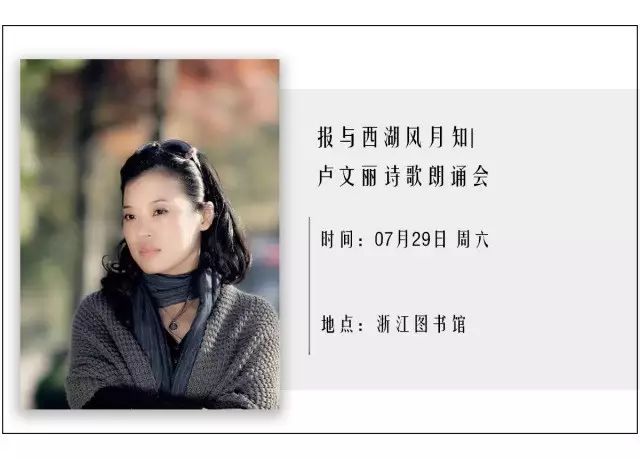 有人说卢文丽的诗歌,是一张“以诗歌方式织就的西湖新名片”。