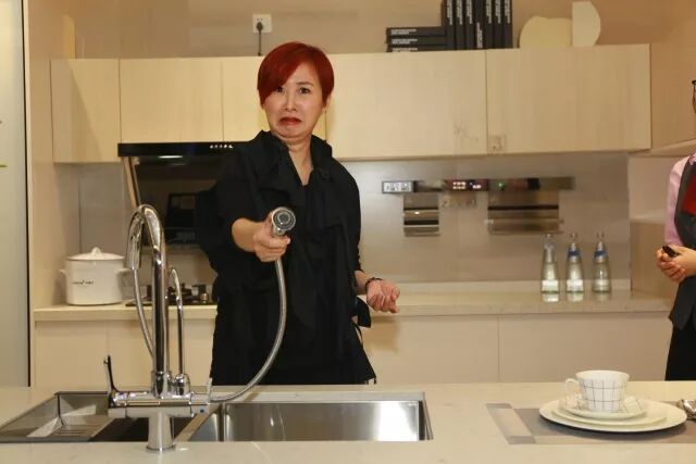 女神完全不顾行程的劳累,马上直奔我们的展馆,一定要目睹我们的产品。平时也有做饭习惯的女神,完全像个好奇心十足的宝宝,东瞧瞧,西看看,嘴上还赞不绝口!