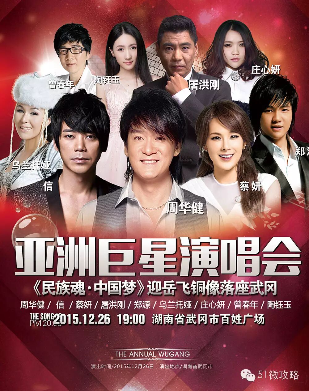 演唱会明星阵容:周华健、信、蔡妍、屠洪刚、郑源、乌兰托娅、庄心妍、陶钰玉、曾春年等