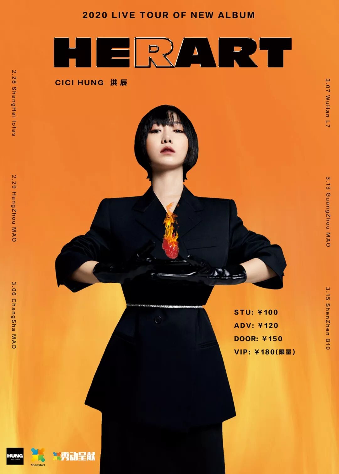 而2020年,洪辰即将开启《HER ART/HEART》新专同名六城巡演。带着新专辑的她,将首次踏上巡演的旅程。