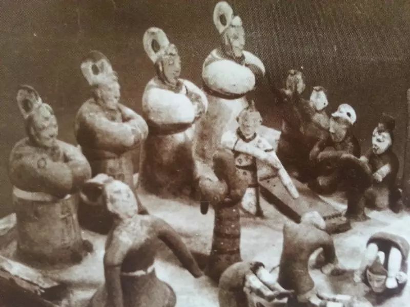 在古代,传播历史有两种方式,一种是史官,西汉的太史令司马迁即是,他修的《史记》主要供最高统治者看阅,以严谨的文字写成巨著,民间看不到,也看不懂。民间传播历史主要靠瞽矇,他们有点生理缺陷,生活在人民中间,以高度的组织能力收集、整理本民族、本地区的传说历史素材,经过艺术加工,并以说唱的方式,不断地在人民中间传播。寓教于乐,使劳动人民既受到教育又得到精神上的娱乐。这些作品在“传神”和艺术夸张方面是无可挑剔的,说明汉陶艺术不单纯着眼于刻画人物的外形,更主要的是对人物的神情动态作了敏锐、细致的观察和着力表现。由于善于选择、表现运动过程中最能代表动与力的一刹那,大大增加了作品的活力和生命气质,在一定程度上突破了造型艺术的一般规律,使作品更富于生活情趣。