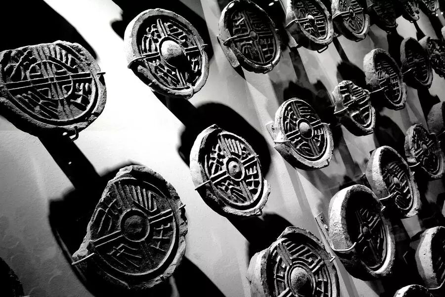 印纹是由刻有图案的印模,单个地打印在坯体上。粘贴浮雕,模印的具有浮雕形象的泥片或捏塑形象,粘贴在器物表面,如陶灶、井栏、樽或仓的足部,铺首则贴在陶壶一类器物的肩部。