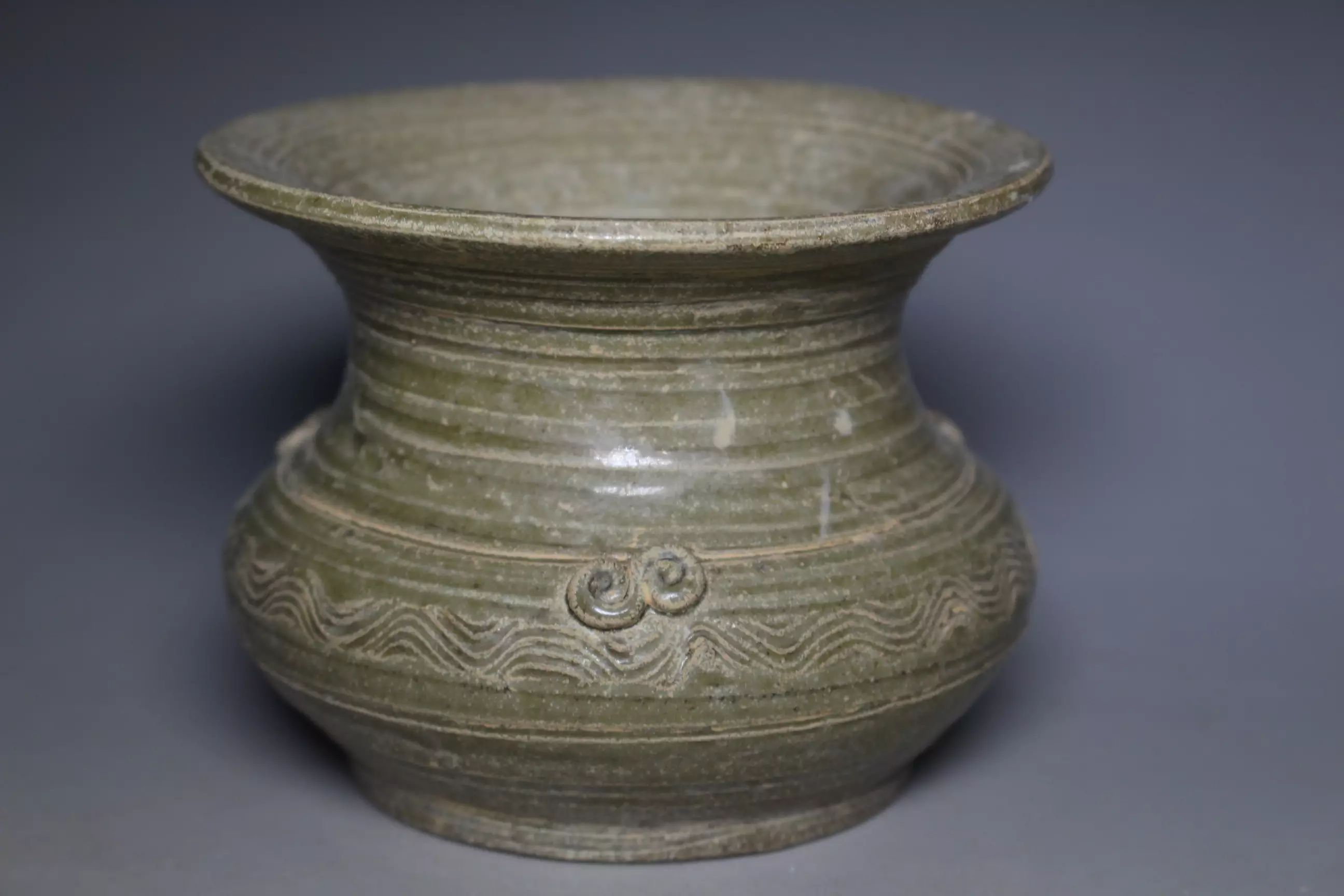 大约从战国时代开始,陶器手工业中出现了一种表面施釉的陶器。在普通瓦胎器物表面,涂有浓厚的深绿、浅绿或棕黄色釉,由于釉料中羼入大量的铅,这种金属熔点很低,在釉里起助熔的作用。这就能使普通陶器在烧制中,呈现出光亮美丽的釉层。