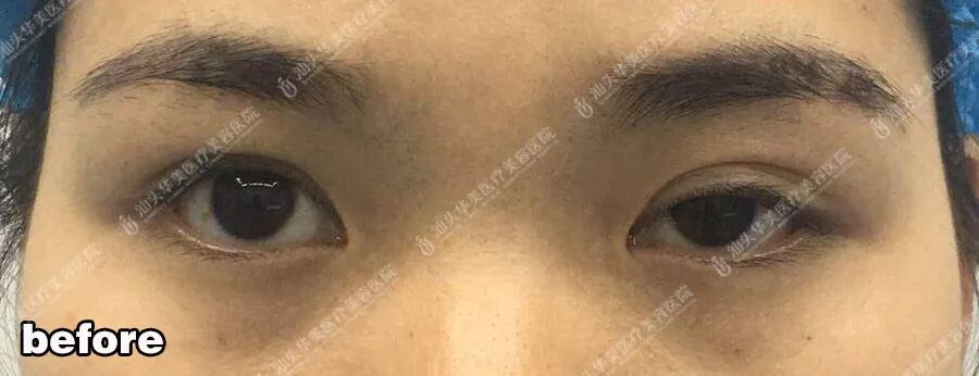 上眼皮松弛、耷拉下来,使原本双眼皮宽度变窄;