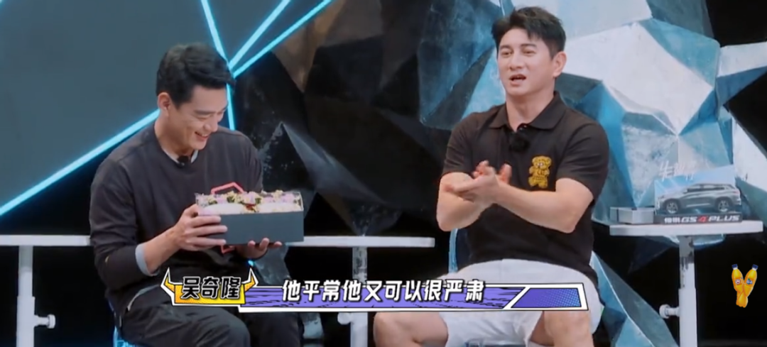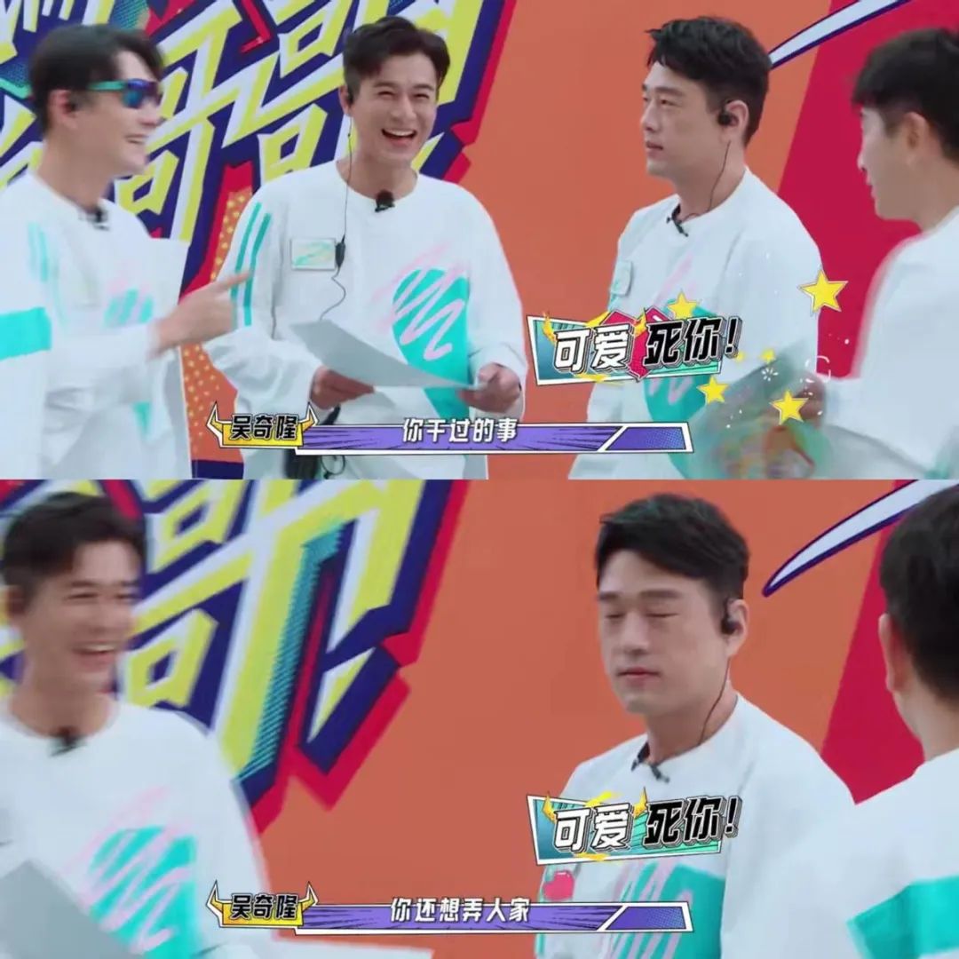 当两位女嘉宾上场,需要选队时,吴奇隆直接凡尔赛:“这么多期节目,我们也就小输了一场”。王耀庆在旁边配合,用表情赞同自己学长的观点。