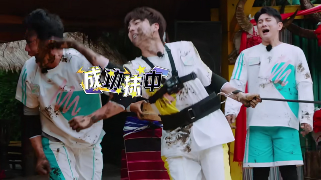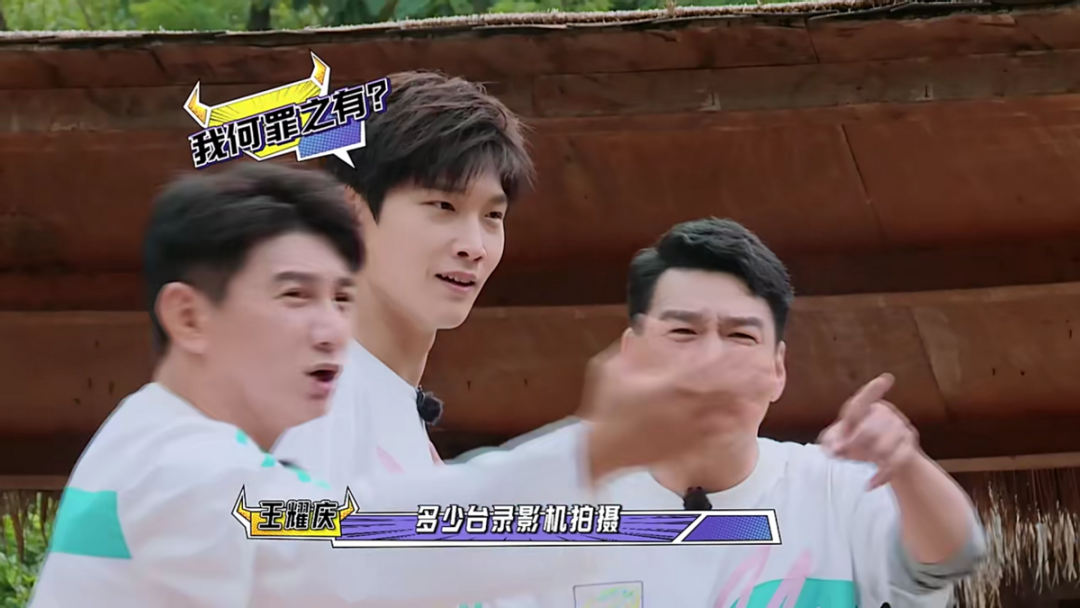 等到王耀庆被农农抹脸的时候在一旁观战的吴奇隆负责“声波”干扰