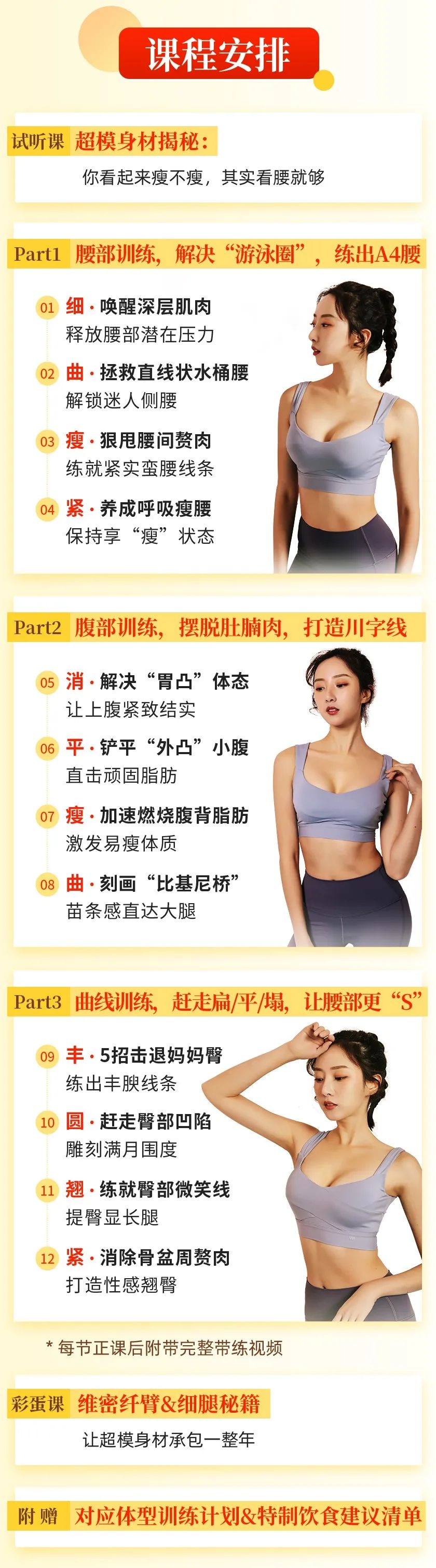 为了让更多人瘦肚全面,额外加入的饮食清单和彩蛋课,一起拥有和若曦老师一样超女神的身材
