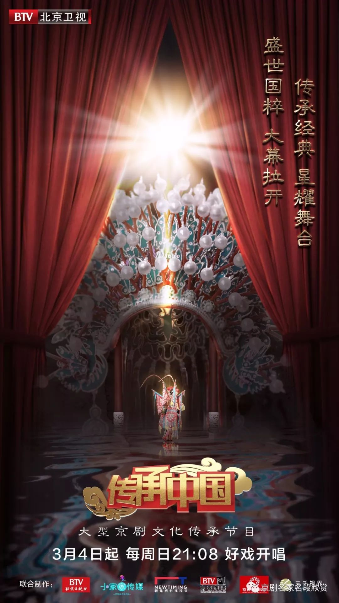 由北京电视台、北京小家家文化传媒有限公司联合打造,北京卫视推出的大型京剧文化传承节目《传承中国》将于今晚21:08开播。节目邀请到近百位京剧名家担任嘉宾,亲自传授,为节目的匠心品质保驾护航。节目中,王珮瑜担任“传承社”的“老板”,刘晓庆、瞿颖、曹云金、李依晓等明星担任“班主”,向京剧名家学习京剧表演艺术,最终为观众奉上一场“明星挑班、名家唱戏”的京剧公演。节目旨在通过明星的影响力聚合社会之力,唤起对国粹京剧的传承之心。