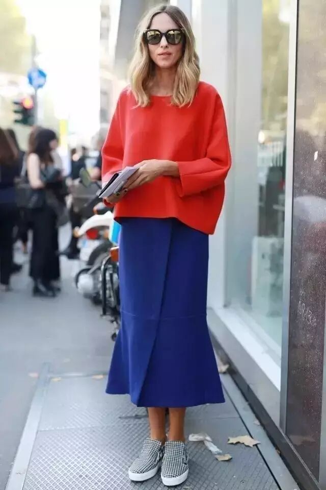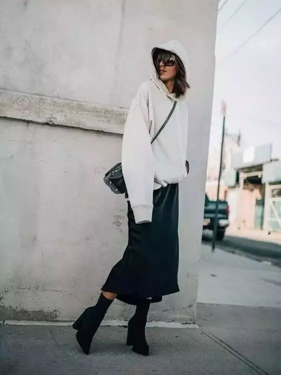 Oversized的卫衣和长裙的组合,时髦的同时还可以遮肉,简直是微胖妹子的绝佳搭配组合有木有。▼