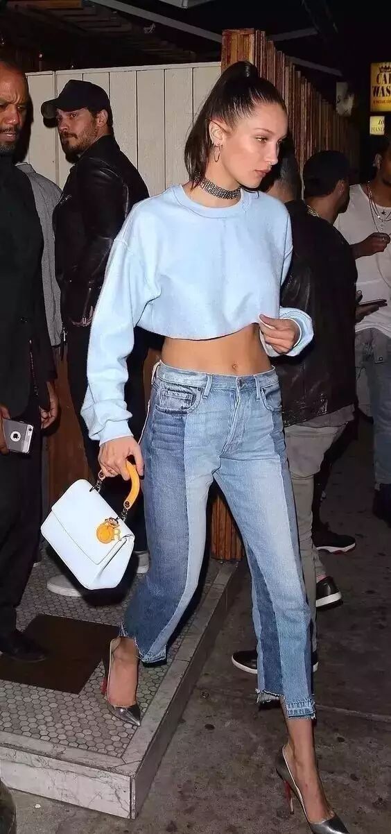 短款卫衣可以有利于你和牛仔裤搭配的时候,拉长腿部线条。▼