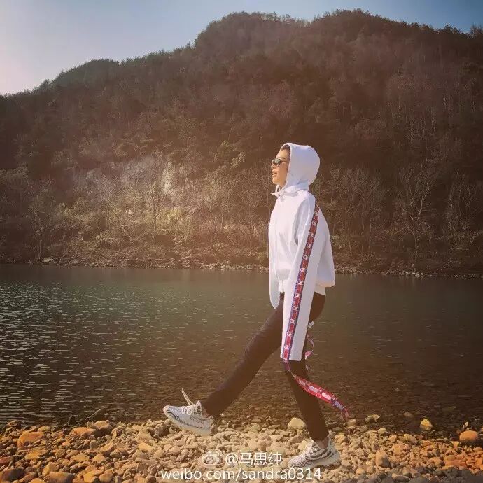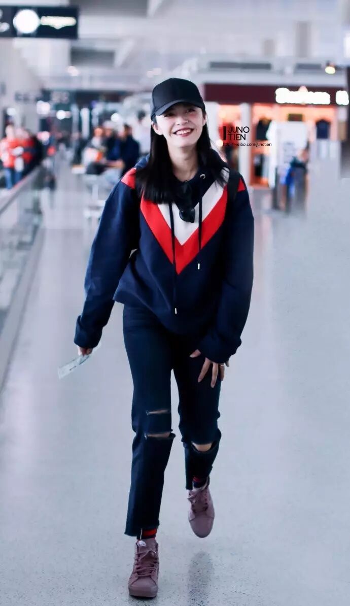 大长腿的张俪短款卫衣配上“校服裤”怎么穿都好看,开衩的设计也是今年的大热。▼